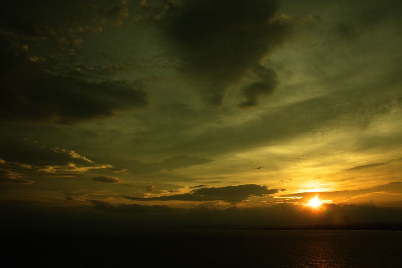 写真Evening sun seen from Enoshima Tweet 正面に富士山があるはずなんだけど・・・雲が厚く全く見えなかった・・・・ 展望台で2時間近く粘りますたけど・・・・ SILKYPIXで、イジリますた・・・