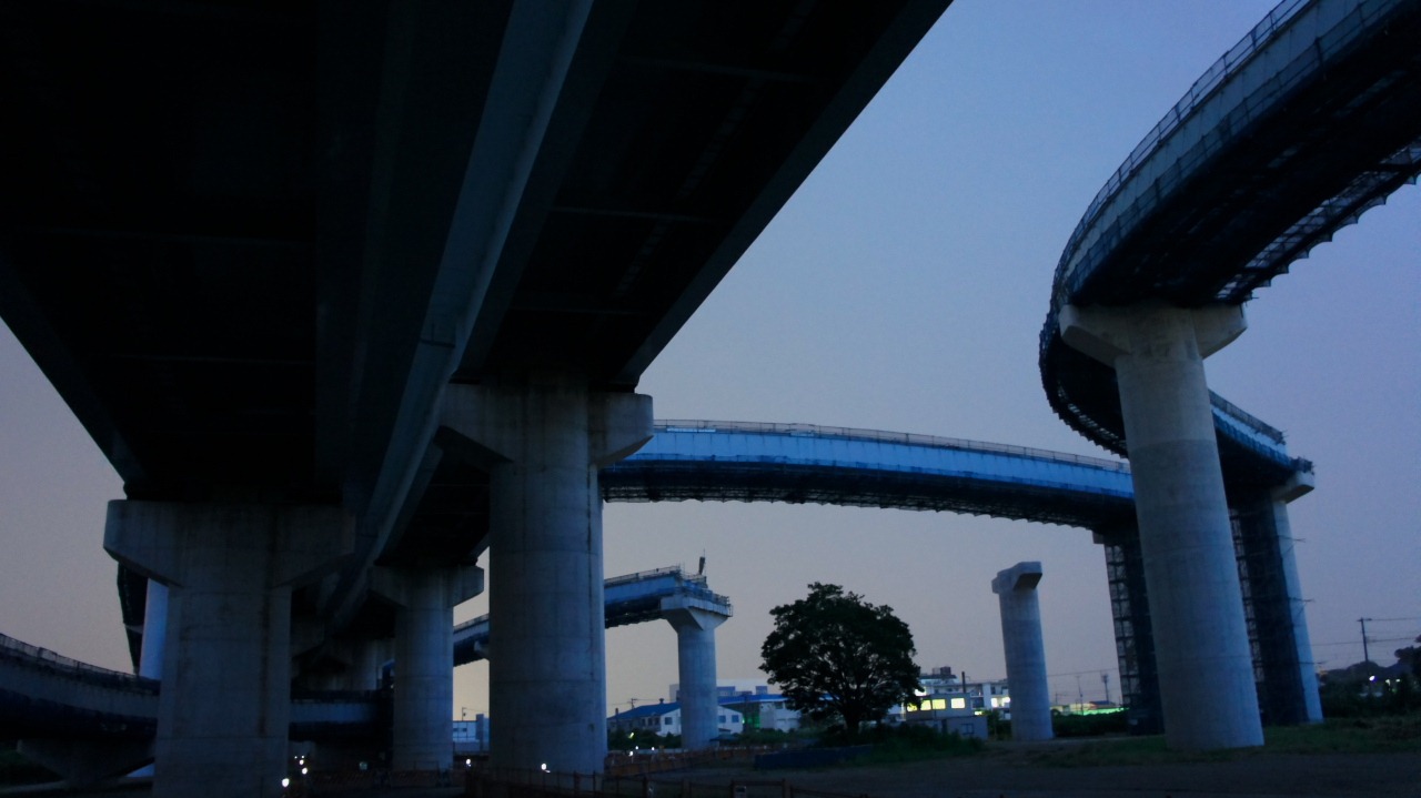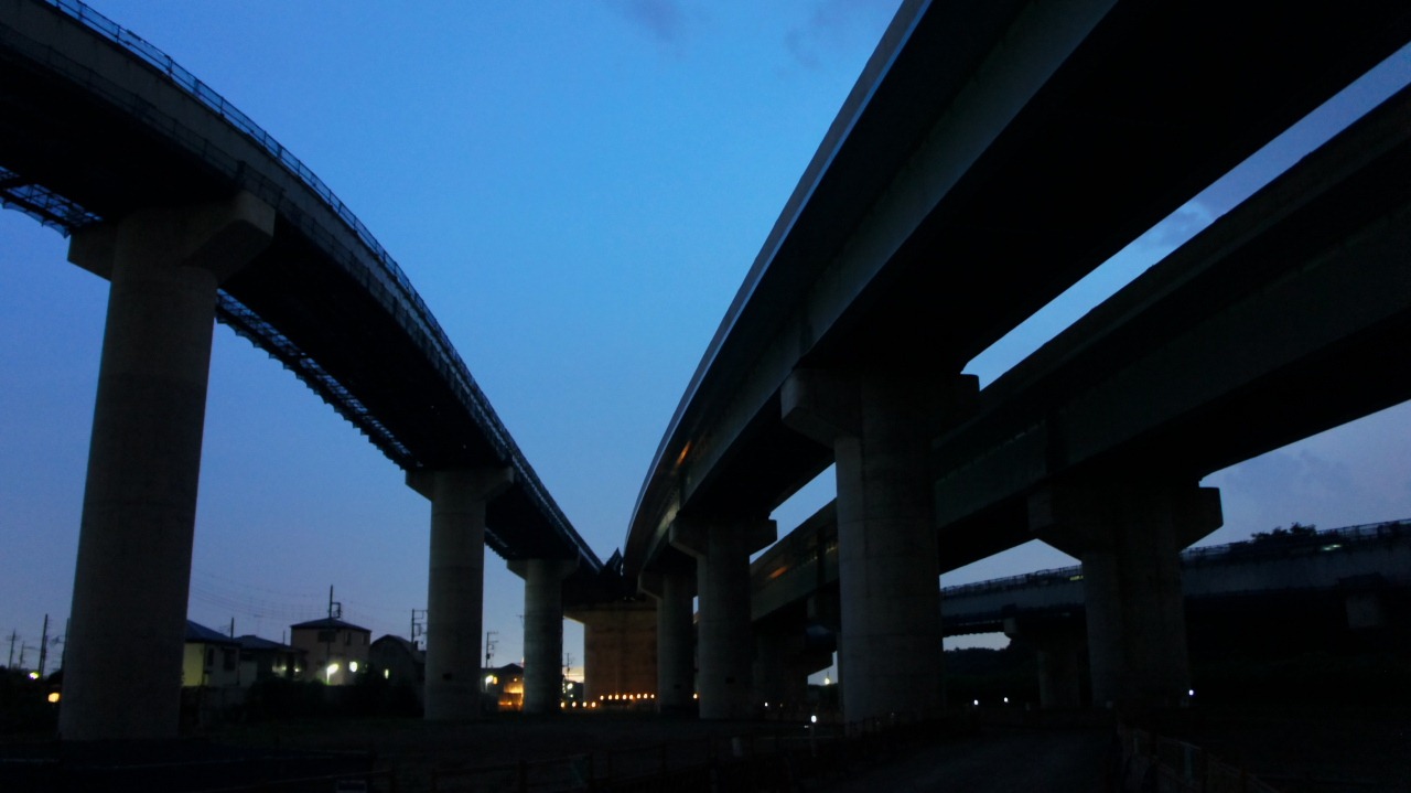 写真建築中にチョット拝見 Tweet 現在工事中の「さがみ縦貫道路 寒川北ICランプ」をロケハンしてきました 完成すると、いい感じのスポットになる感じ満載でした・・・ 目視では殆ど見えないくらい暗い中、NEX-5の「手持ち夜景」モードで撮影です