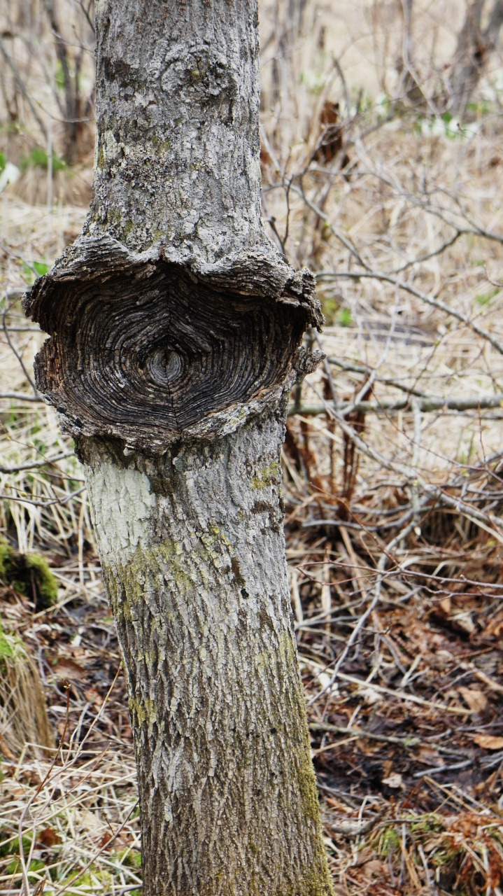 GWに北海道で、山菜取りに行ったときに、視線を感じたので周りを見渡すと、木の目が沢山あった!