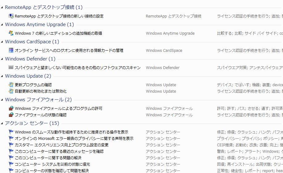各機能が一覧表示され、コントロールパネルから探すより、全然楽だ!