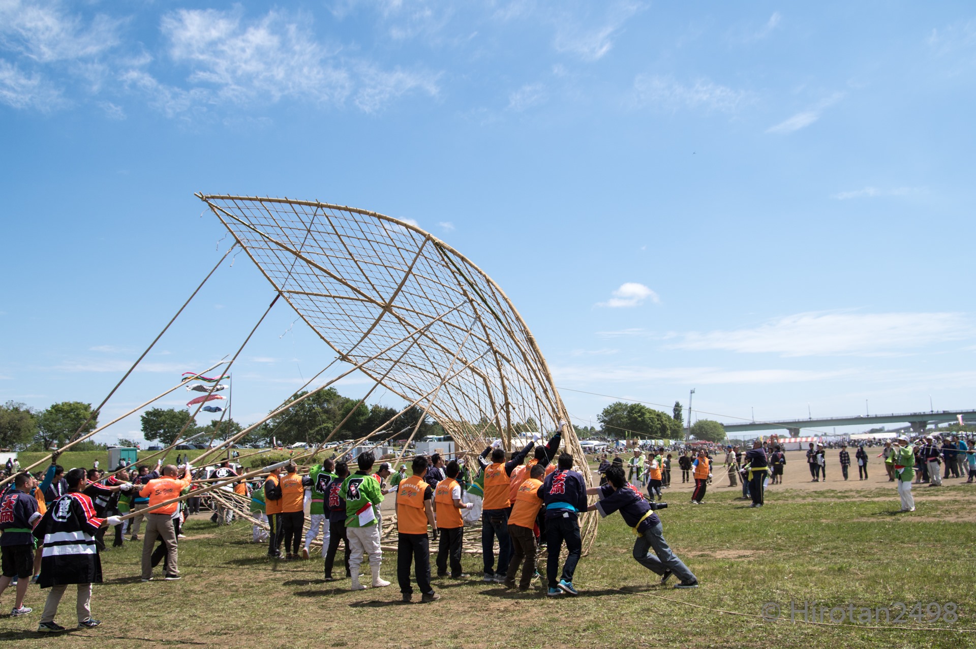 約100畳の大きさの凧を上げる祭りを見てきたよ